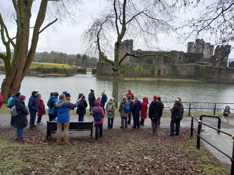 Some people broke away at this stage and visited Caerphilly Castle. Those remaining walked around the circumference of the castle and over to Morgan Jones Park for a few more chats: