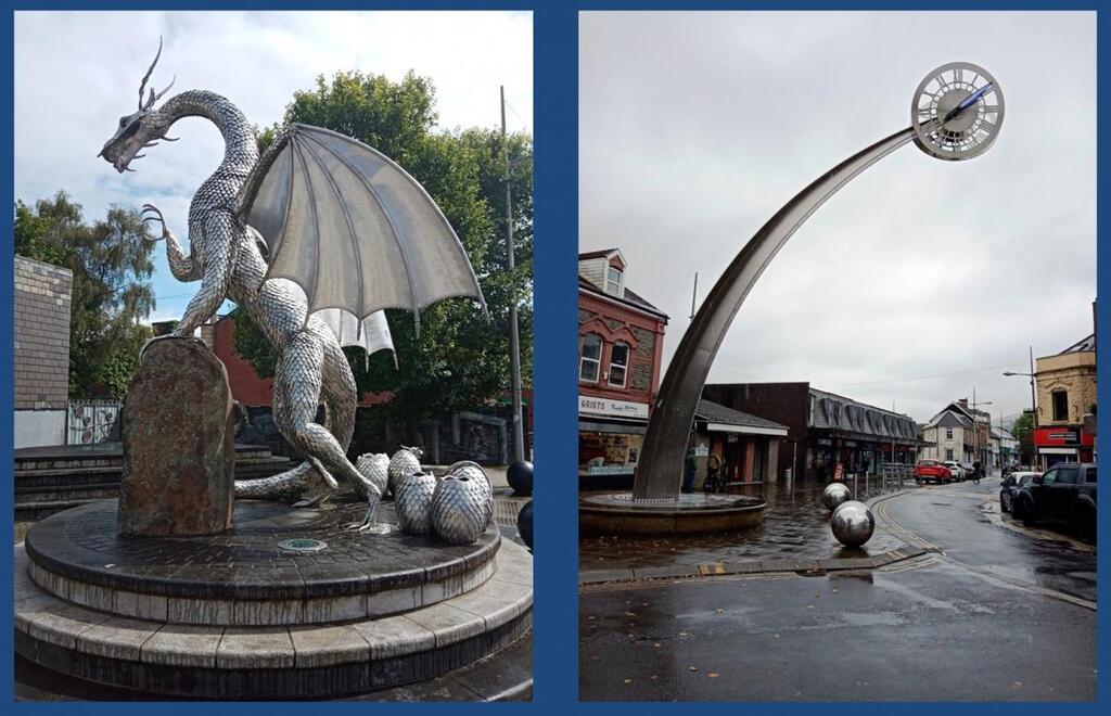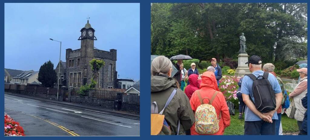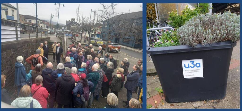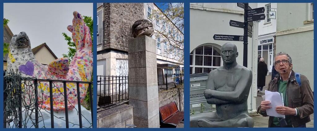 There had been some tinkering to the TfW timetable in recent weeks which meant the group arrived on different trains but soon met up, admiring the planters cared for by Caerphilly u3a. The reminded ourselves of the life of Malcolm Uphill, the Isle of Man TT rider, and then the jackdaw and geese sculptures of Julie Westerman on the main street. It would have been rude of course not to give Tommy Cooper a wave as we were passing and tell a couple of his jokes.