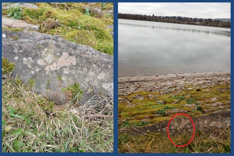 We adapted our plans and took an early coffee break and as if my magic the path opened for us to start walking at noon. We kept in the sunshine on the upper path rather than venture down into the wood which would have been pretty soggy after all the recent rain. We did however have an opportunity to admire the work of the Ordnance Survey and specifically a river used for measuring height. This one is 47.122m high.